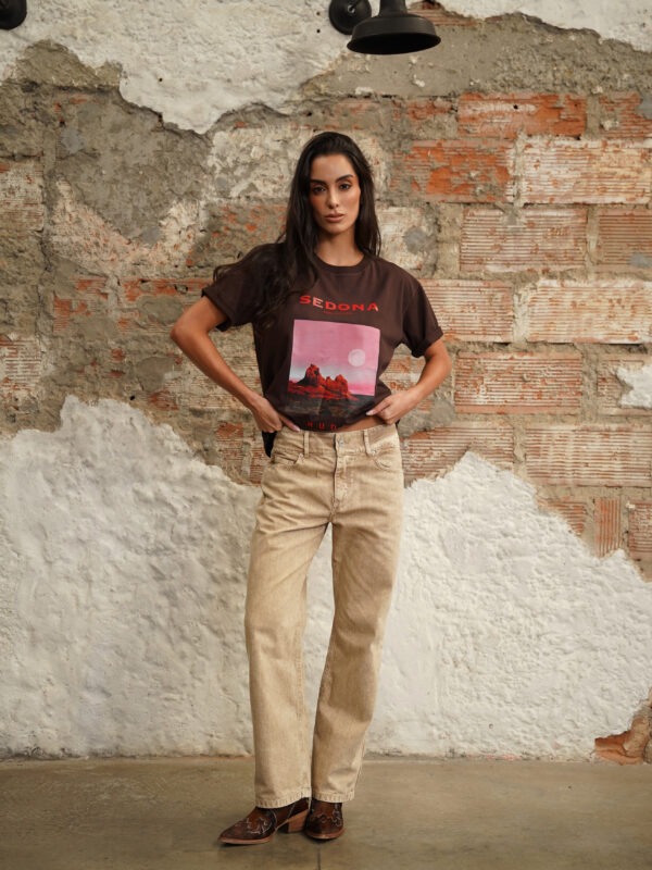 DARK BROWN MID-RISE WIDE LEG JEAN