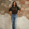BLUE HIGH RISE JEAN WITH SIDE RHINESTONES