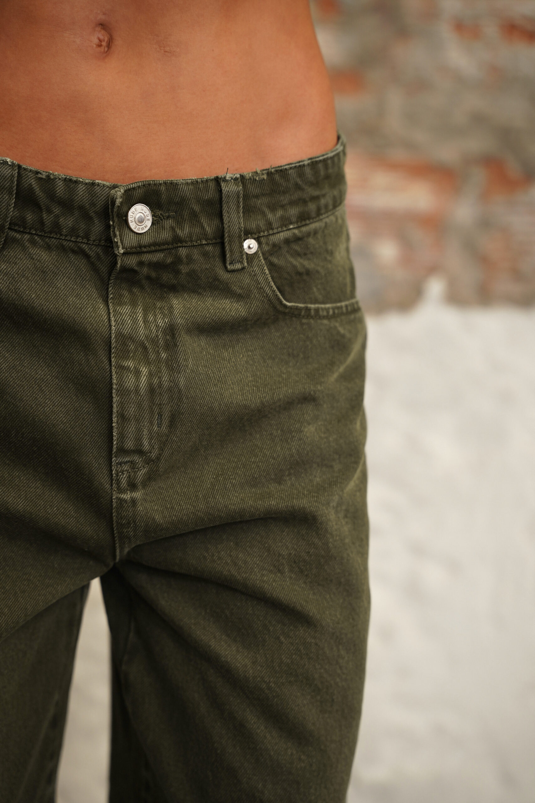 GREEN MID-RISE BARREL JEAN