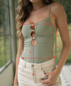 Body color verde claro con tiras delgadas.Diseño con tres aberturas frontales unidas por cuentas de madera color crema. Silueta ajustada y broches en la zona del Panty para ajuste.