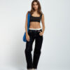 Jeans de tiro bajo, cinco bolsillos, silueta de corte recto, tejido con mezcla de denim y velvet con efecto, ajuste con cierre y botón metálico