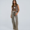 Pierna de corte recto y largo, tiro alto. Talla 6: Cintura: 74cm Cadera: 100cm, Tiro delantero: 27cm, Tiro posterior: 34,5cm, Entrepierna: 80cm, Bota: 50cm. La modelo mide 1.77cm y usa una talla 6