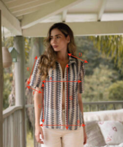 Camiseta tejida oversize con rayas verticales en contraste, manga corta, cuello abierto tipo resort y botones al frente.