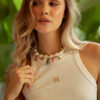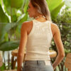 Camiseta tank ajustada en rib con logo en mostacilla