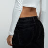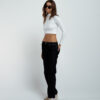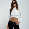 Crop top slim fit con cuello perkins, manga larga ranglán.